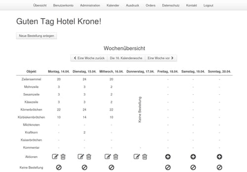Bestell-Seite für Hotels, Ferienwohnungen, Endkunden von Backwaren einer Bäckerei. Diese wurde erstmalig 2016 erstellt und über die Jahre stetig weiterentwickelt. Die Basis bilden PHP 8 und MySQL. Als Frontend-Framework wurde uikit v2 eingesetzt.