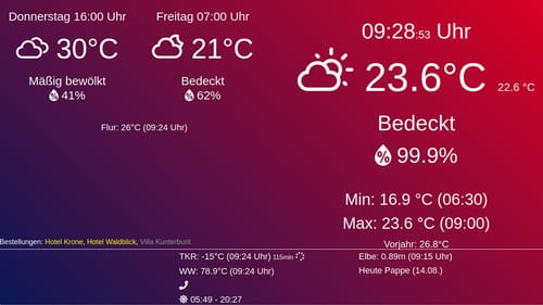 • Anzeige von Temperatur, Wetter, Anrufe, Geburtstage,...